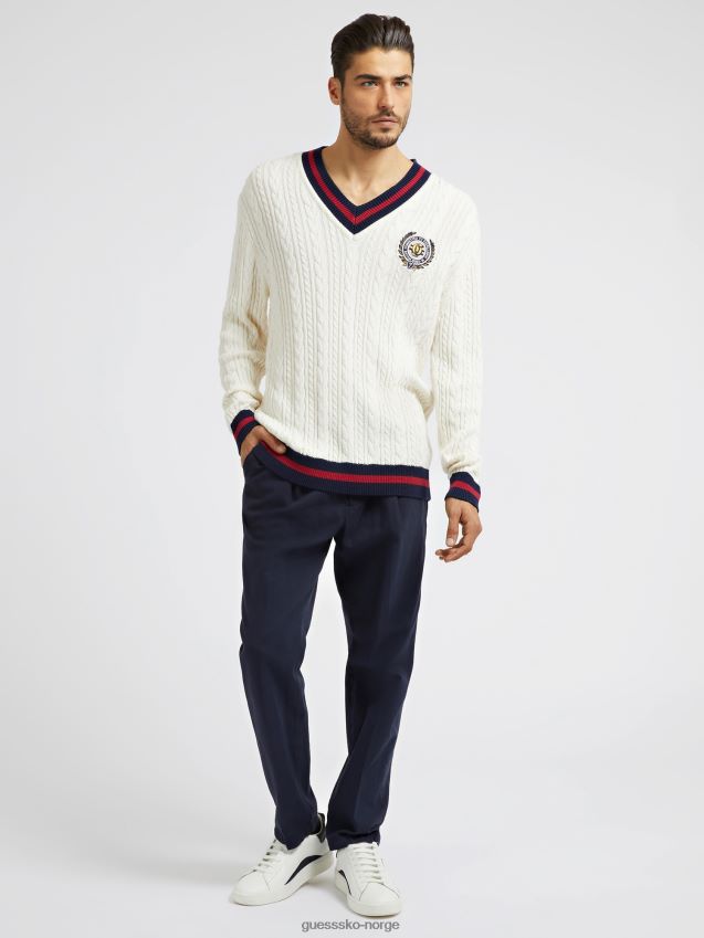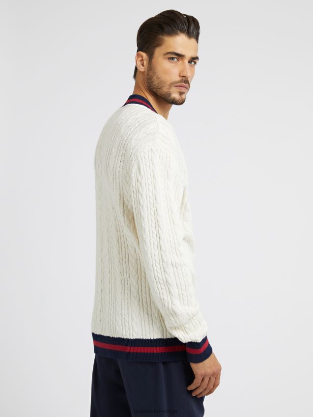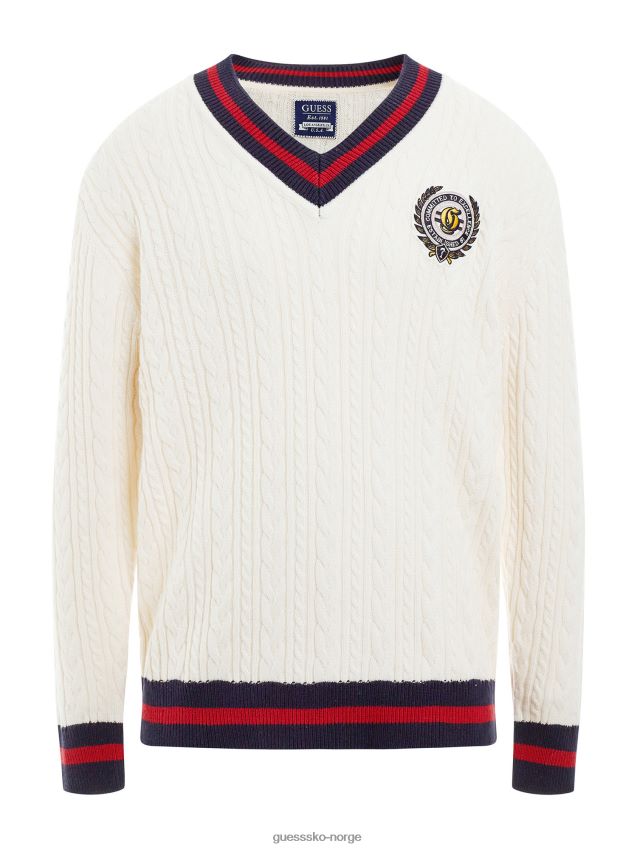 Guess front patch kabelstrikket genser hvit hvit menn F0LJ80608