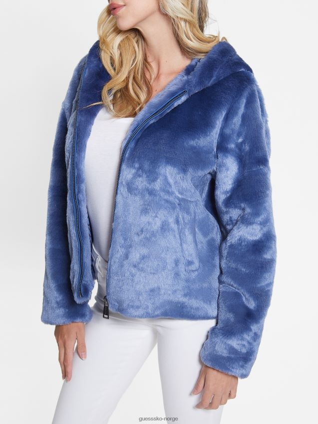 Guess daniela fuskepelsjakke lidenskapsblå lidenskapsblått kvinner F0LJ809865