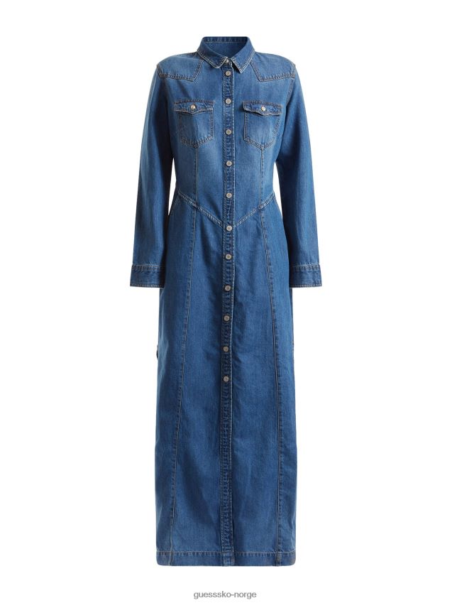 Guess blå lang denimkjole blå kvinner F0LJ803912