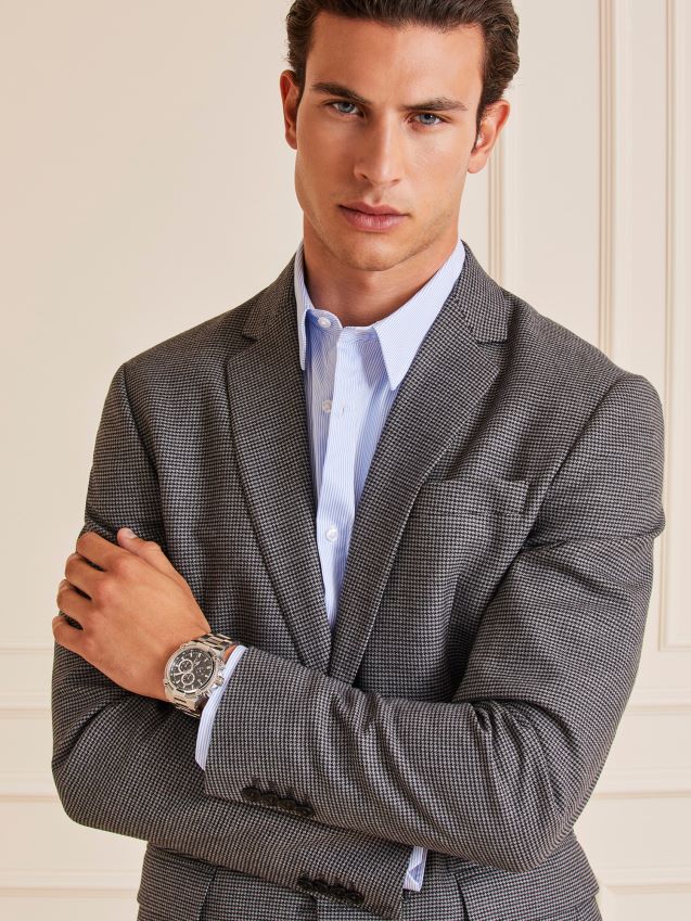 imponer Jevnaldrende Med Denne Svært Detaljerte Kronografklokken For Menn Med Unike Kabel- Og Skrudetaljer Som Uttrykker Kraft Og Dynamikk Gjennom Sine Mange Teksturkontraster Og Børstet Og Polerte Fasetter, Virkelig Kraftfulle I Denne Lenkearmbåndsversjonen I Helt Stål Med Midnattsort Urskive.