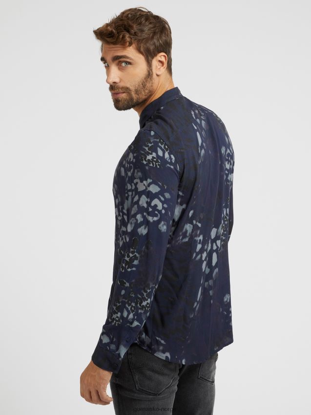 Guess blå animalier skjorte blå menn F0LJ80723